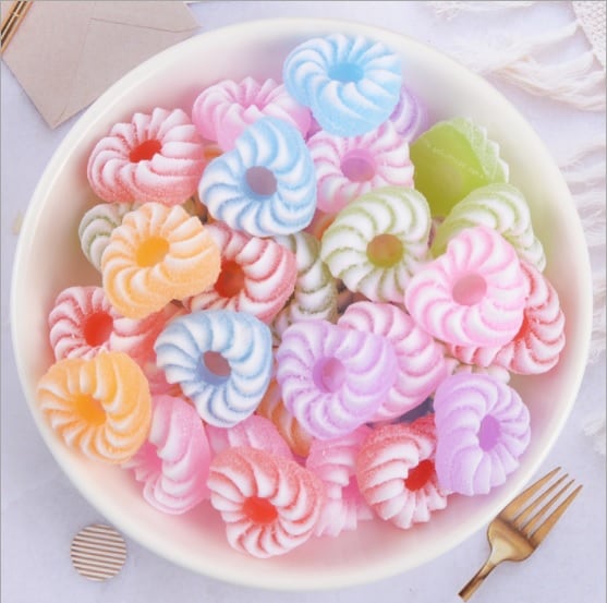50個20-21mm 本物のようなシュガーキャンディー ドーナツ型 スイーツデコパーツA185