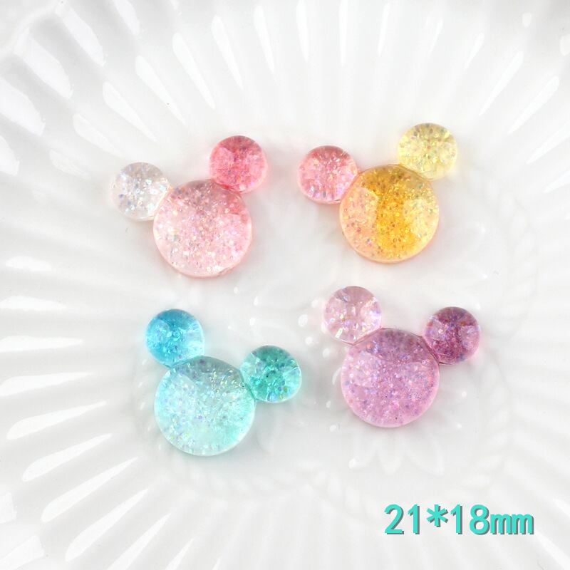 100個 キラキラパーツ マウス ハート リボン 王冠 チェリー シェル 星Y56